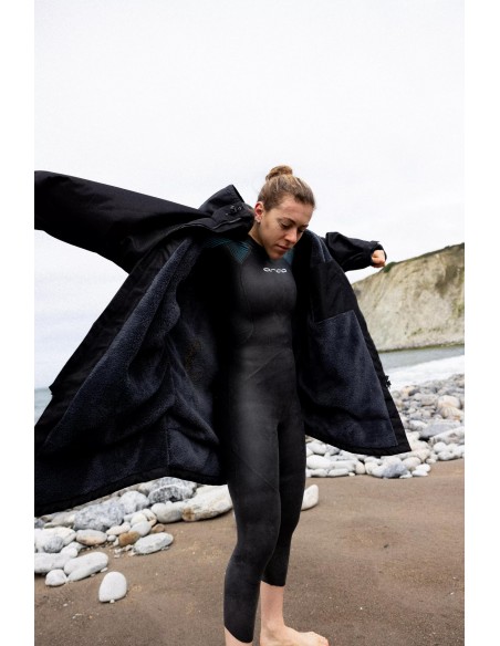 This mid-leg waterproof parka, with built-in fleece lining, will keep you warm before and after your workouts and competitions at low temperatures. Its windproof outer fabric will prevent the entry of cold air, while the fleece lining maximizes the retention of body heat.