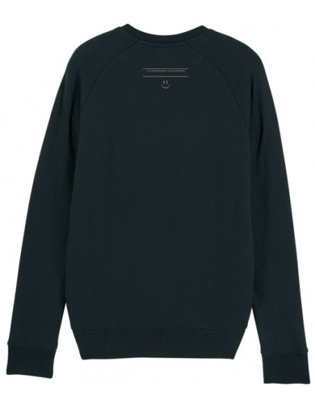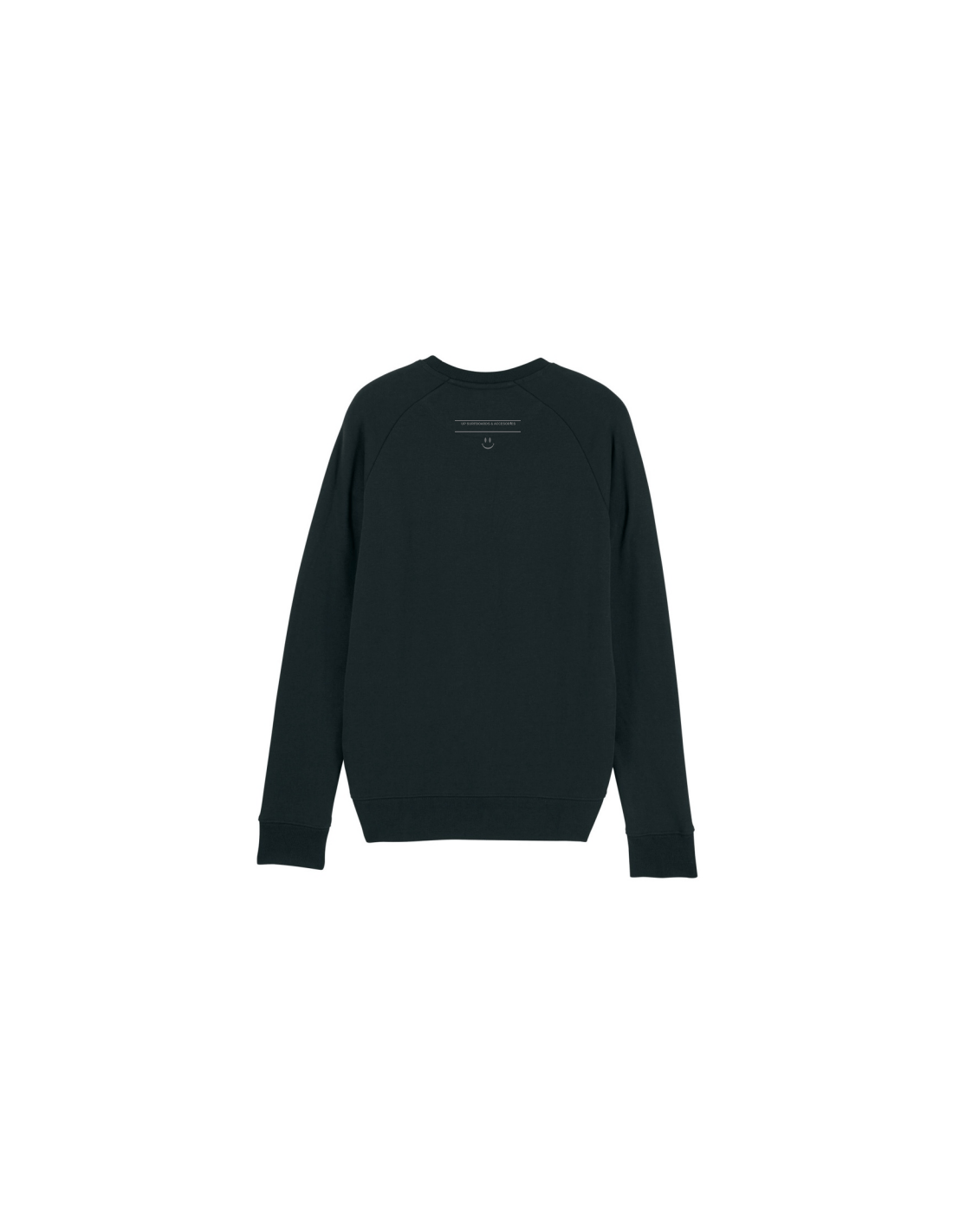 Jersey negro de cuello redondo 85% algodón orgánico hilado y peinado , 15% poliéster reciclado , Tejido lavado , Tacto suave , 300 GS.